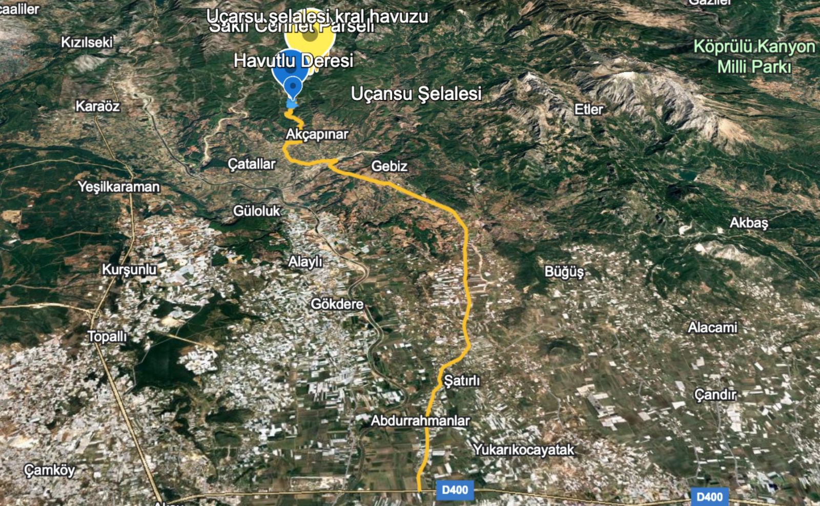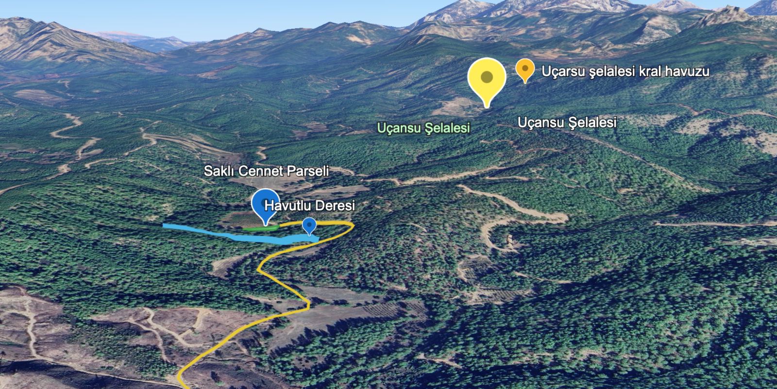 Bu alan, Antalya’nın en özel doğa rotalarından Kral Havuzu – Uçansu Şelalesi hattına oldukça yakın konumdadır.